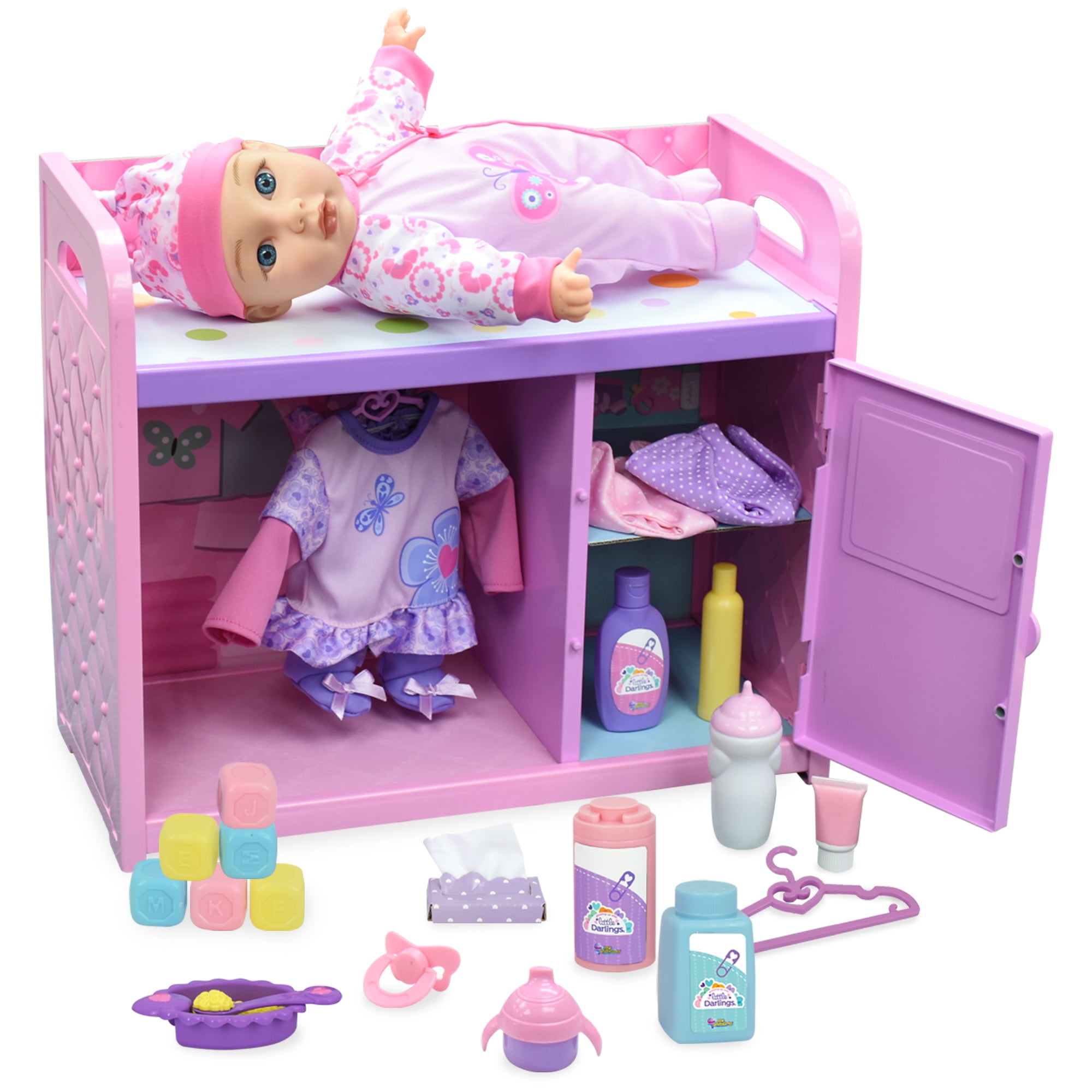 With great features such as the flip over. Price of the changing tables. A changing table rests on top of the unit with a pretty mural of a unicorn and the words love written next to it to make sure baby doll has a sweet sentiment to look forward to before bedtime. Hape wooden baby doll play highchair seat toddler toy high chair furniture, pink. Buy top selling products like storkcraft™ alpine changing table and oxford® baby harper changing table. It has a bottom shelf for storing doll supplies, and a foam changing pad on top. Shop online for quick delivery with 28 days return or click to collect in store. The changing stations are a great sturdy option that come in many different colour and designs. Wooden change table $ 75.00 88 pack crawler nappies $ 22.00. After bathing baby, she was placed on the changing table area to be dressed while being entertained by the overhead mobile. Buy top selling products like storkcraft™ alpine changing table and graco® lauren changing table with pad in white. Including cot, change table/bath, high chair, carrier and baby anna and elsa dolls. A sink so the baby doll can take a bath, and a washing machine to wash all of her clothing.