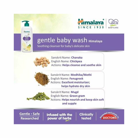 Himalaya's gentle baby bath is unique by its natural formulation, infused with the goodness of chickpea, fenugreek and green gram which cleanses your newborn's skin, gently.